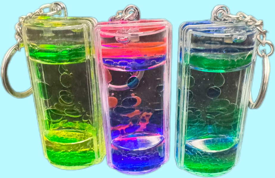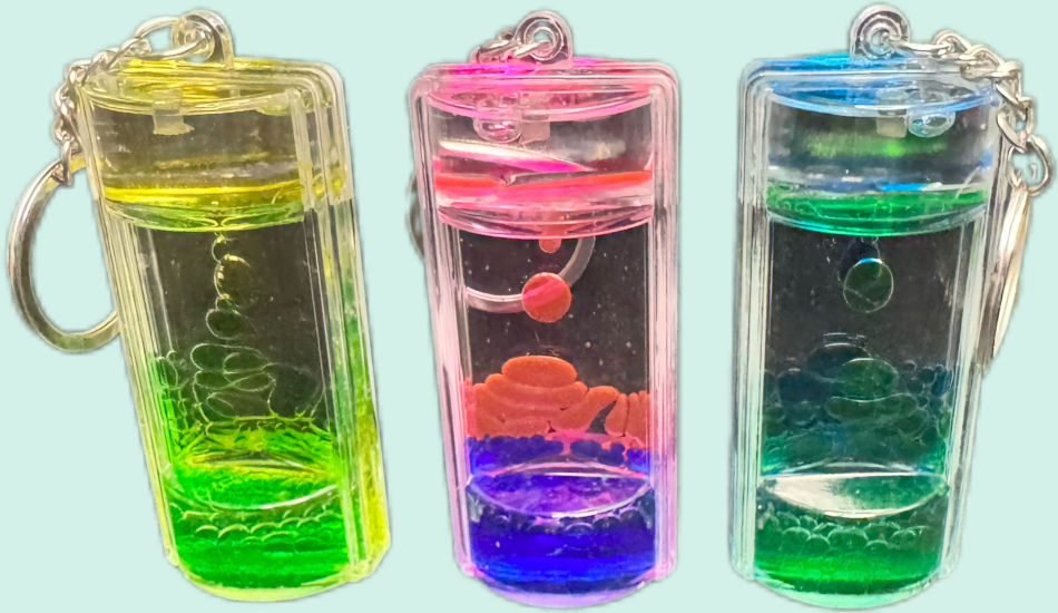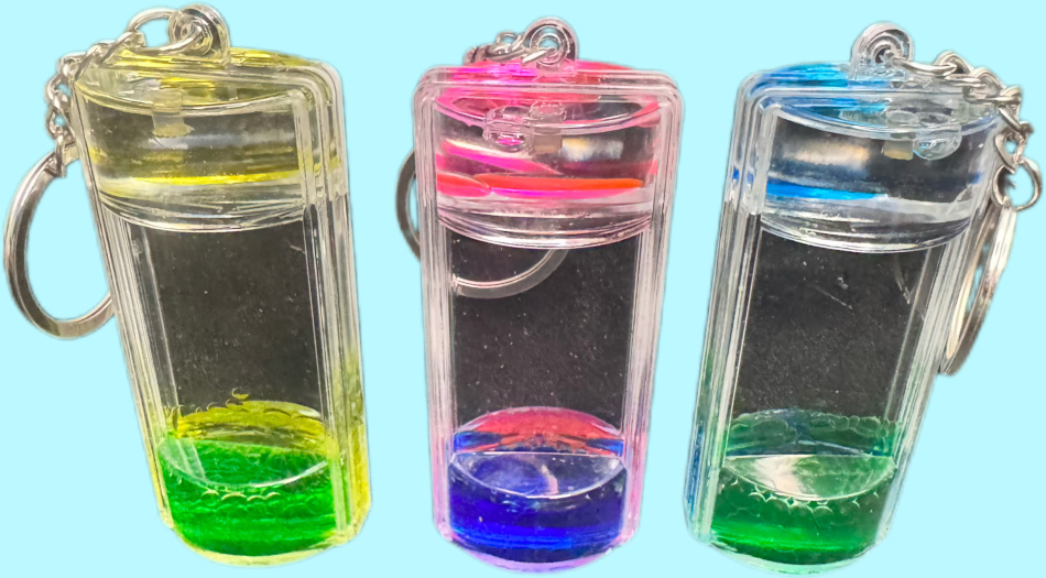 This is a limited edition item that is only available while supplies last. These are liquid dropper keychains. You flip them over and the colored liquid flows in bubbles slowly to the other side. Grab one now while they are still available!