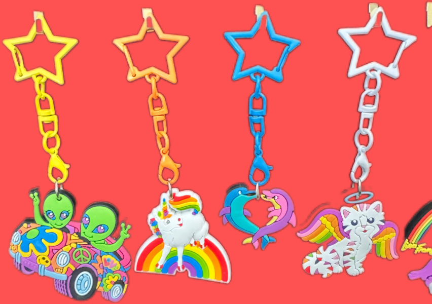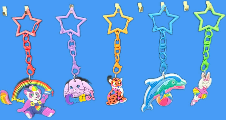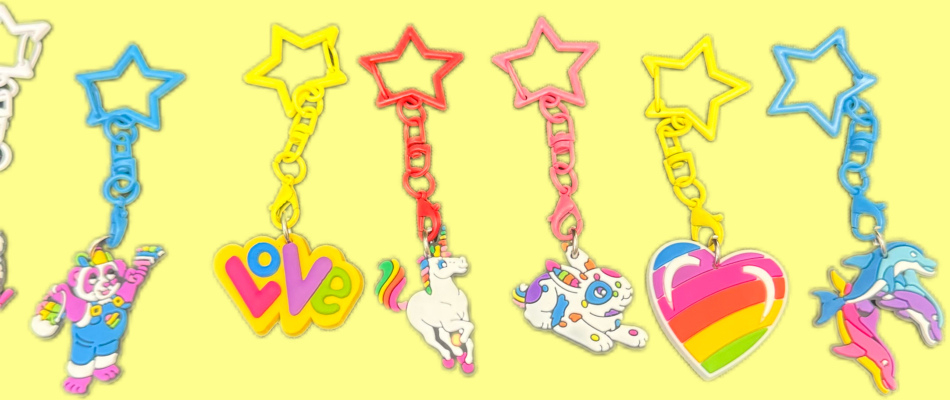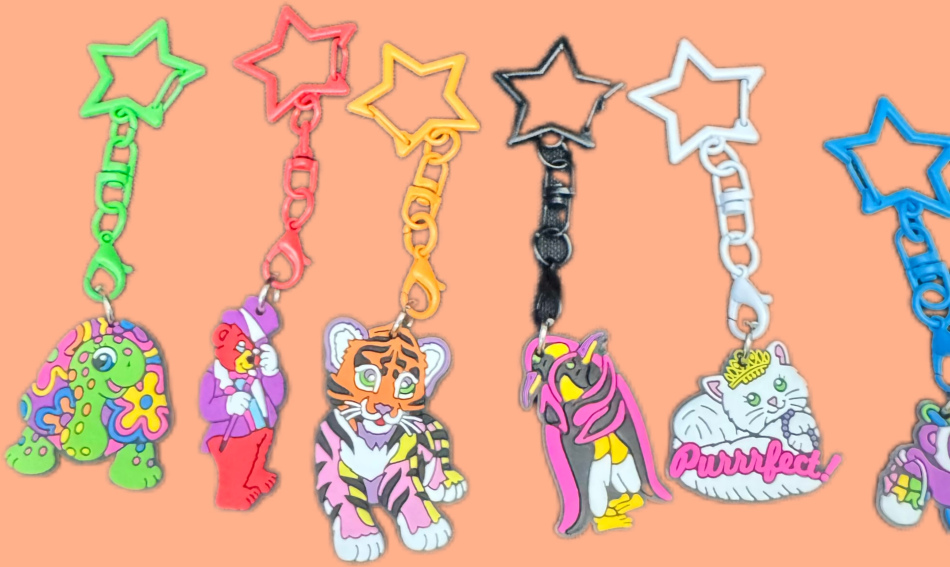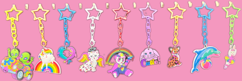 This is your chance to own an adorable keychain honoring Lisa Frank. Lisa Frank is a symbol of colorful design and happy memories from the early 80's to early 2000's. Order is for 1 keychain.