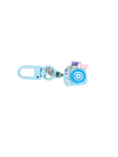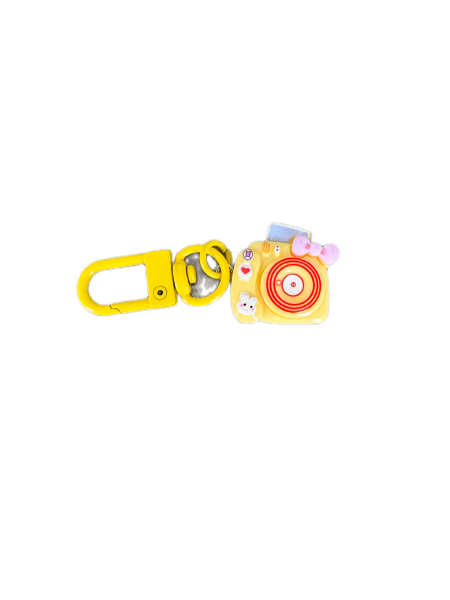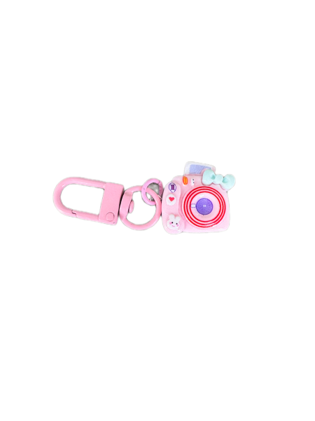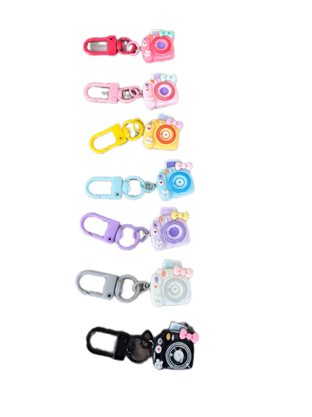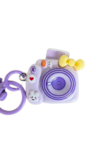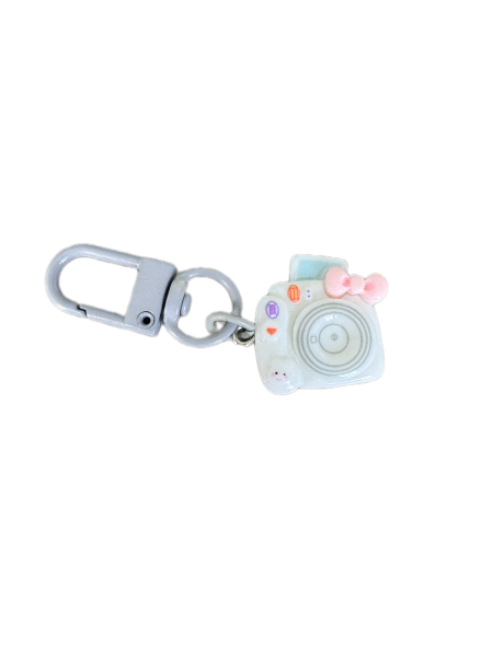 This is a camera charm. It shows a photo coming out of it at the top and has adorable images for the buttons like a little bunny. It comes in lots of great colors too! Check them all out.