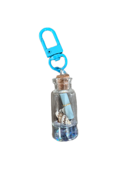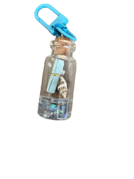 This is a Message in a Bottle charm. It has a wrapped up note and a seashell inside with blue glitter/gel at the bottom to give it the look of the ocean. This is such a cute summer piece!
