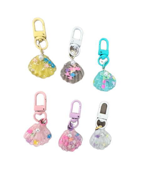 These transparent Seashell charms are so cute! They even have colorful stars and pearls inside them! Each one varies slightly but all are equally fun!