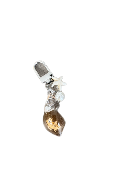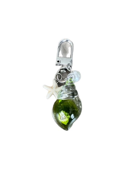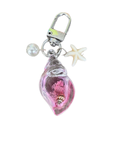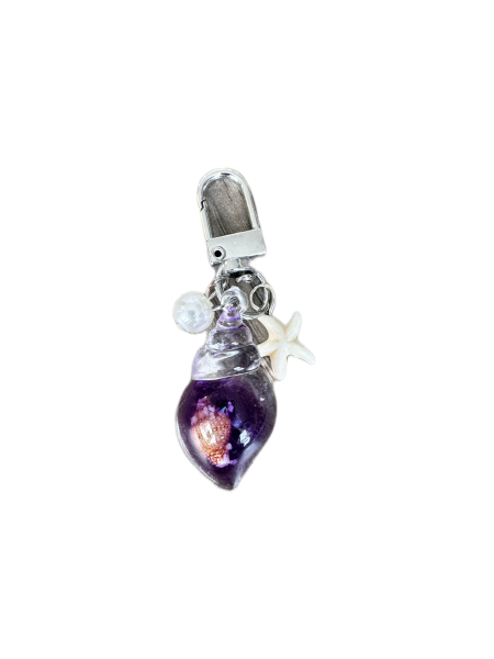 This is an adorable charm shaped like a seashell. It is filled with a colorful gel and a real mini seashell. This charm even comes with a mini starfish attached to it. This is the perfect addition to your summer line up!